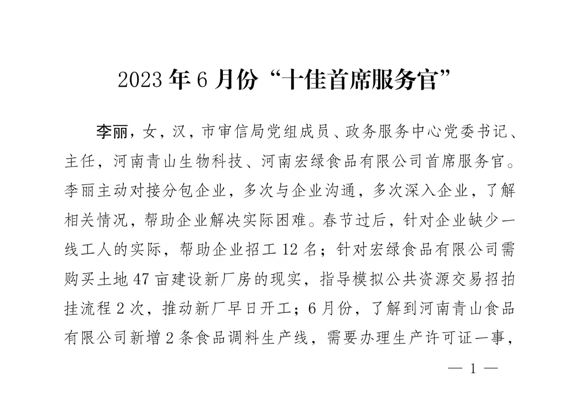河南省“萬(wàn)人助萬(wàn)企” 活動(dòng) 漯河市2023年6月份“十佳首席服務(wù)官”