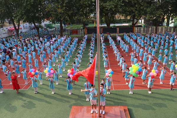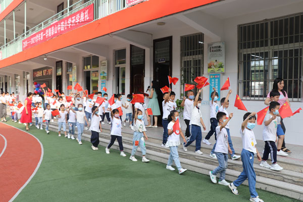 在音樂聲和全校同學的掌聲中,一年級班主任老師帶領(lǐng)新同學揮動手中的小紅旗,昂首邁步走到操場前臺,仿佛在向全世界宣告:從今天起就能在溫馨的校園里學到文化知識,懂得做人的道理,學會求異創(chuàng)新的本領(lǐng),能融入到這樣的學習環(huán)境,是無上驕傲、無上幸運之事,那份自豪感相互傳遞著,笑容洋溢在稚嫩的臉頰上。此刻,鮮艷的五星紅旗伴隨著雄壯的國歌冉冉升起,開學典禮就此拉開帷幕。全校師生共同唱響國歌,祝福偉大祖國繁榮富強。