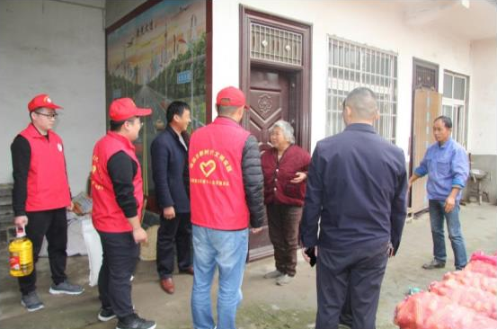 活動中,村支部書記與駐村第一書記楊志等7余名志愿者一起走入幫扶的“親戚”家中,為他們送去大米、面粉、食用油等慰問品。駐村書記楊志為幫扶戶講解我國設(shè)立“扶貧日”的主要目的和意義,鼓勵他們堅定貧困戶自立自強、勤勞致富、脫貧退出的信心。