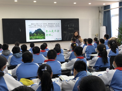 六年級(jí)的李敏杰老師,給我們帶來(lái)了《青山不老》。李老師課堂節(jié)奏緊湊,注重知識(shí)的連貫性,熟練的運(yùn)用多媒體教學(xué),渲染氛圍,吸引學(xué)生注意力調(diào)動(dòng)學(xué)生積極性!學(xué)生們預(yù)習(xí)認(rèn)真,整節(jié)課自學(xué)氛圍很濃厚。