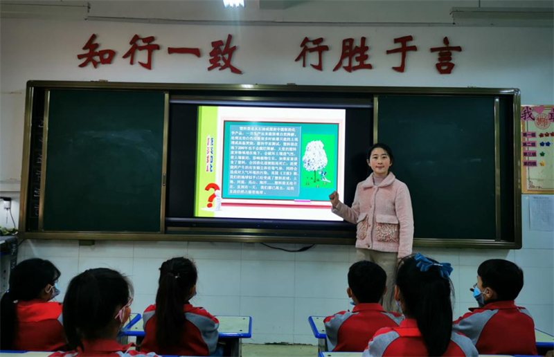 三是強(qiáng)化機(jī)制確保成效。讓學(xué)生了解白色污染的同時(shí),學(xué)校通過(guò)“小手拉大手”的形式,由學(xué)生把禁限塑相關(guān)知識(shí)帶給家庭成員,讓他們也積極參與到活動(dòng)中,為孩子們樹(shù)立起榜樣,通過(guò)家校聯(lián)合,起到更好的教育效果,實(shí)現(xiàn)“教育一個(gè)孩子、影響一個(gè)家庭、輻射整個(gè)社會(huì)”的宣傳教育目的。 此次活動(dòng),讓廣大師生、家長(zhǎng)充分了解了塑料污染治理的重要性和必要性,有利于廣泛凝聚共識(shí),營(yíng)造全社會(huì)共同參與的良好氛圍,為治理塑料污染,創(chuàng)建美麗家園作出更多的努力。(潘范學(xué) 王娟)