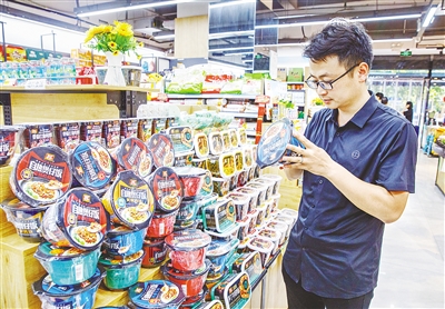 7月26日,市區(qū)一家連鎖超市,市民選購我市企業(yè)生產(chǎn)的預(yù)制菜產(chǎn)品。
