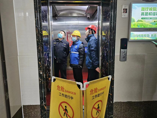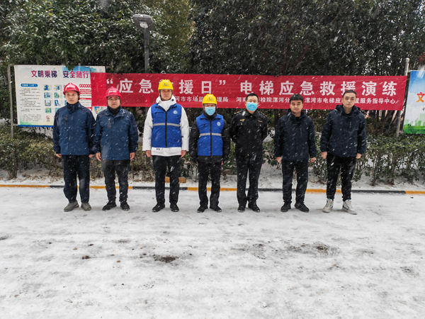 演練中,通過模擬電梯在降雪冰凍等惡劣天氣停電出現(xiàn)電梯困人事故。被困人員通過撥打96333電梯應(yīng)急救援電話向市電梯應(yīng)急處置中心進行求救,中心接警人員立即指派電梯所屬維保單位維保人員前往救援,現(xiàn)場安全解救被困人員,及時排除電梯故障,最后對電梯全面檢查后恢復(fù)正常運行。