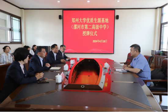 4月17日上午,鄭州大學(xué)許立敏教授蒞臨漯河市第二高級中學(xué),在我校510會議室舉行了“鄭州大學(xué)優(yōu)質(zhì)生源基地”授牌儀式。漯河市第二高級中學(xué)校領(lǐng)導(dǎo)班子、中層干部出席了本次儀式。