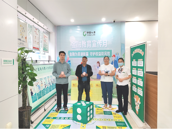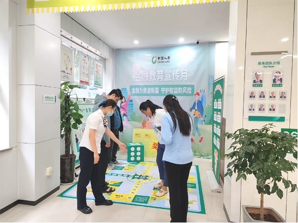 中國人壽壽險漯河分公司黃河路營業(yè)廳內(nèi)設(shè)置了全國統(tǒng)一的“金融知識便利店”,分為活動主海報、禮品區(qū)、金融機場互動版塊、“八大權(quán)益”連連看互動板塊,將金融知識融入妙趣橫生的互動游戲之中。金融機場飛行棋游戲互動版塊分為保險專機、反詐專機、反洗錢專機、反非專機,客戶朋友們輪流擲骰子前進或后退,根據(jù)點數(shù)對應(yīng)位置進行做俯臥撐、背古詩、蹲起、模仿動物叫的游戲和學(xué)習(xí)金融保險知識等。“八大權(quán)益”連連看活動讓客戶朋友們?nèi)娴亓私庀M者八大權(quán)益等知識,大家在歡聲笑語中輕松掌握金融防騙、反洗錢、防范非法集資、金融保險知識等。公司對參與互動游戲的客戶朋友們送上了中國人壽專屬的小禮品,讓客戶在參與中收獲知識與喜悅。同時,寓教于樂的游戲項目有效提升了金融知識普及的覆蓋面與接受度,彰顯了中國人壽服務(wù)社會的責(zé)任擔(dān)當(dāng)。