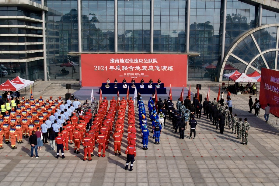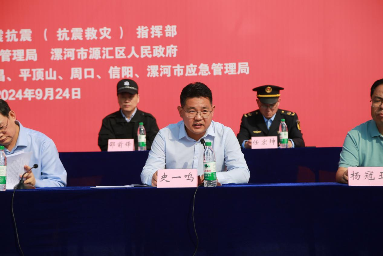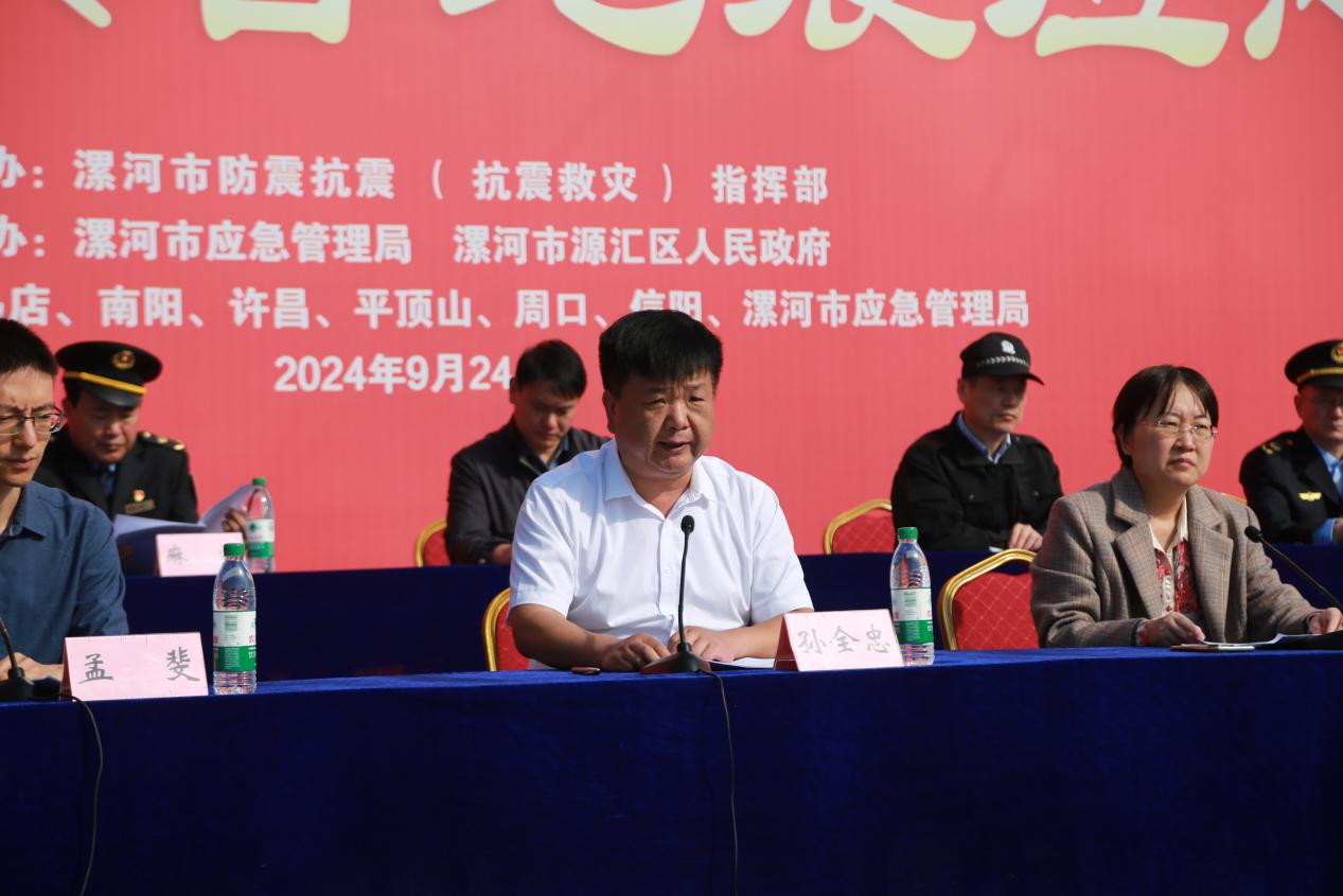 9月24日,豫南地震快速應(yīng)急聯(lián)隊2024年度聯(lián)合地震應(yīng)急演練在漯河市源匯區(qū)舉行。此次演練由漯河市防震抗震(抗震救災(zāi))指揮部主辦,漯河市應(yīng)急管理局、源匯區(qū)人民政府承辦。平頂山市、許昌市、漯河市、南陽市、周口市、駐馬店市、信陽市應(yīng)急管理局一同參加演練。河南省地震局黨組成員、副局長郝敏,漯河市政府副秘書長王振甫,漯河市應(yīng)急管理局黨委書記、局長孫全忠, 源匯區(qū)委副書記、區(qū)政府區(qū)長史一鳴等出席活動。