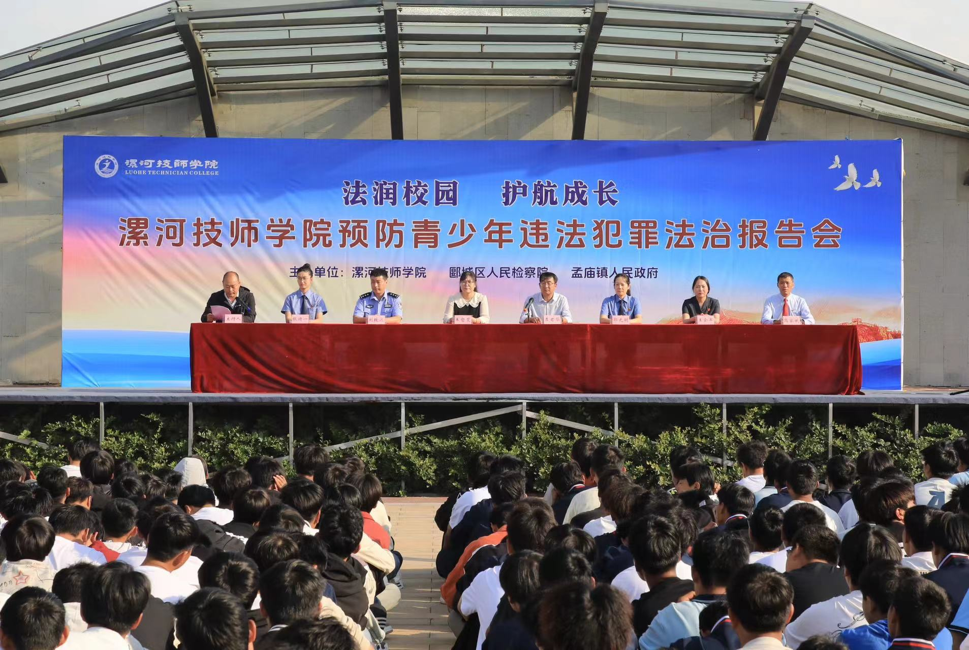 為進一步增強青少年平安法治觀念,預防和減少青少年違法犯罪現(xiàn)象的發(fā)生,保護青少年的合法權(quán)益。9月24日,孟廟鎮(zhèn)聯(lián)合區(qū)檢察院在漯河市技師學院,開展“法潤校園 護航成長”預防青少年違法犯罪法治報告會活動,全校2000余名師生參加。