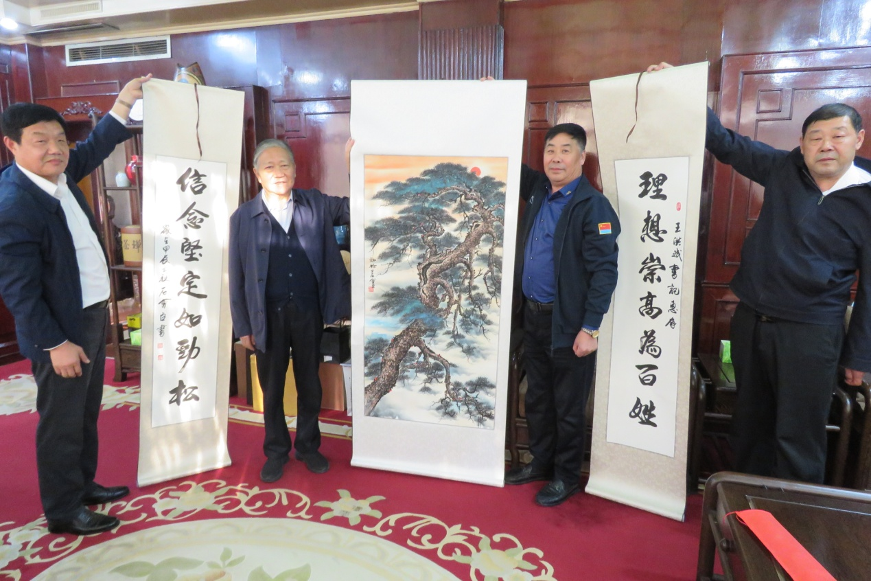河南籍國家一級美術師石會臣為南街村黨委書記王宏斌贈送書畫作品