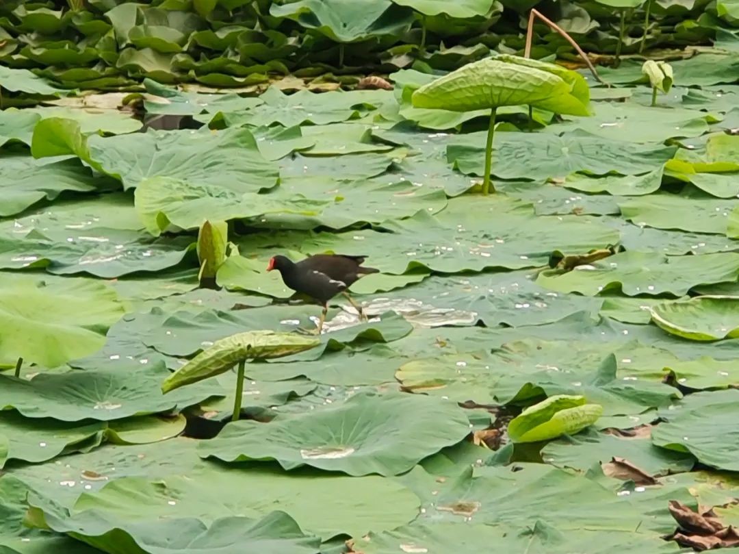 精細(xì)管養(yǎng):織就湖面生態(tài)錦緞。“一日六巡兩清” 是養(yǎng)護(hù)人員養(yǎng)護(hù)日志里的工作準(zhǔn)則。每天9點(diǎn)前,養(yǎng)護(hù)人員就會(huì)駕駛打撈船完成第一次湖面漂浮物清理,到了15點(diǎn)還會(huì)進(jìn)行第二次復(fù)檢,力求讓落葉、雜物打撈干凈。通過(guò)優(yōu)化水體循環(huán)系統(tǒng),湖內(nèi)已形成"荷花—微生物—水鳥"的微型生態(tài)鏈:荷花根系固定淤泥、凈化水質(zhì),為魚蝦提供庇護(hù);水草適度生長(zhǎng)為鳥類提供天然食物,鳥兒橘紅色腳掌劃開水面的畫面,已成荷塘靈動(dòng)一景。