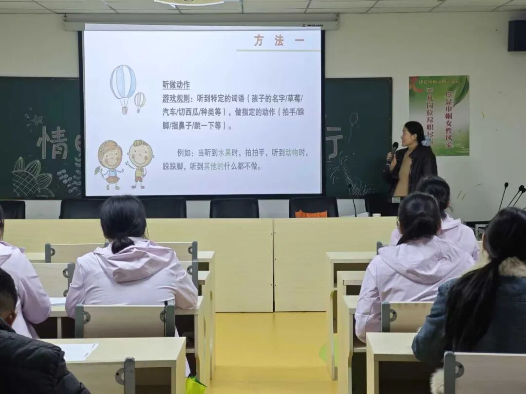 接著楊老師根據(jù)院內(nèi)兒童的情況,詳細(xì)講解了“分層任務(wù)拆解法”。即充分貼合院內(nèi)兒童特點(diǎn),將目標(biāo)拆為“小步驟”,如教認(rèn)“杯子”,先讓孩子觸摸建立安全感、再聽發(fā)音、最后指認(rèn),同時(shí)結(jié)合眼神交流與鼓勵(lì)話語,用情感吸引孩子專注,積累孩子信心。