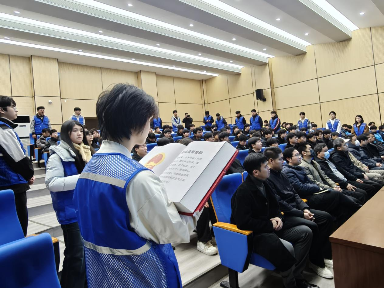 活動現(xiàn)場,漯河技師學(xué)院院長馮凱為郾城區(qū)人民檢察院檢察長胡君頒發(fā) “法治副校長” 聘書,副院長李君華為孟廟司法所所長高家斌頒發(fā) “法治輔導(dǎo)員” 聘書?,F(xiàn)場莊嚴(yán)有序,師生們奏唱國歌,舉行 “迎憲法”“閱憲法” 傳遞儀式,共同誦讀憲法序言,以實際行動表達(dá)了對憲法權(quán)威的尊重和對法治信仰的堅守。
