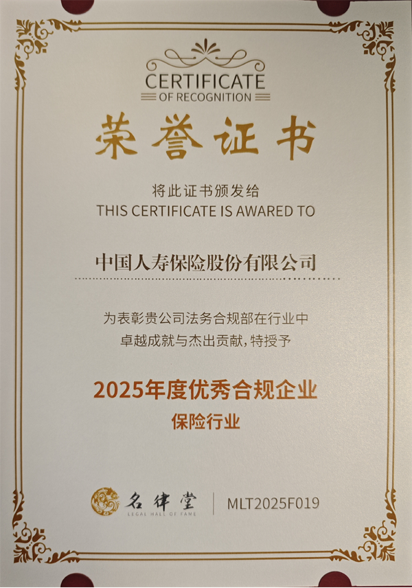 深耕合規(guī)顯質(zhì)效,中國(guó)人壽榮獲保險(xiǎn)行業(yè)“2025年度優(yōu)秀合規(guī)企業(yè)”