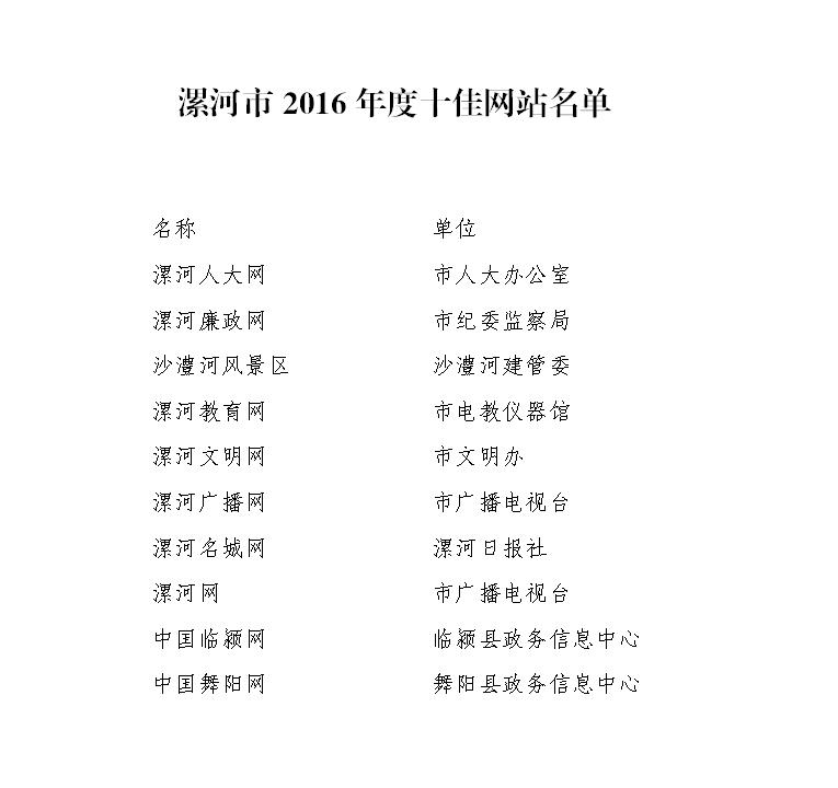 附件:1. 漯河市2016年度十佳網(wǎng)站名單