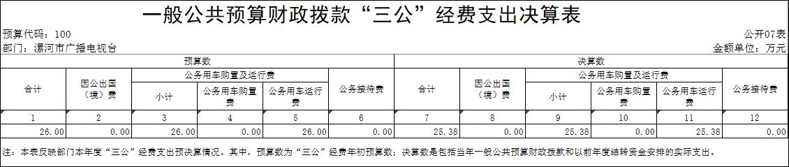 十、“三公”經(jīng)費:納入同級財政預決算管理“三公”經(jīng)費,指單位使用財政撥款安排的因公出國(境)費、公務(wù)用車購置及運行費和公務(wù)接待費。其中,因公出國(境)費反映單位公務(wù)出國(境)的國際旅費、國外城市間交通費、住宿費、伙食費、培訓費、公雜費等支出;公務(wù)用車購置及運行費反映反映單位公務(wù)用車車輛購置支出(含車輛購置稅)及租用費、燃料費、維修費、過路過橋費、保險費、安全獎勵費用等支出;公務(wù)接待費反映單位按規(guī)定開支的各類公務(wù)接待(含外賓接待)支出。