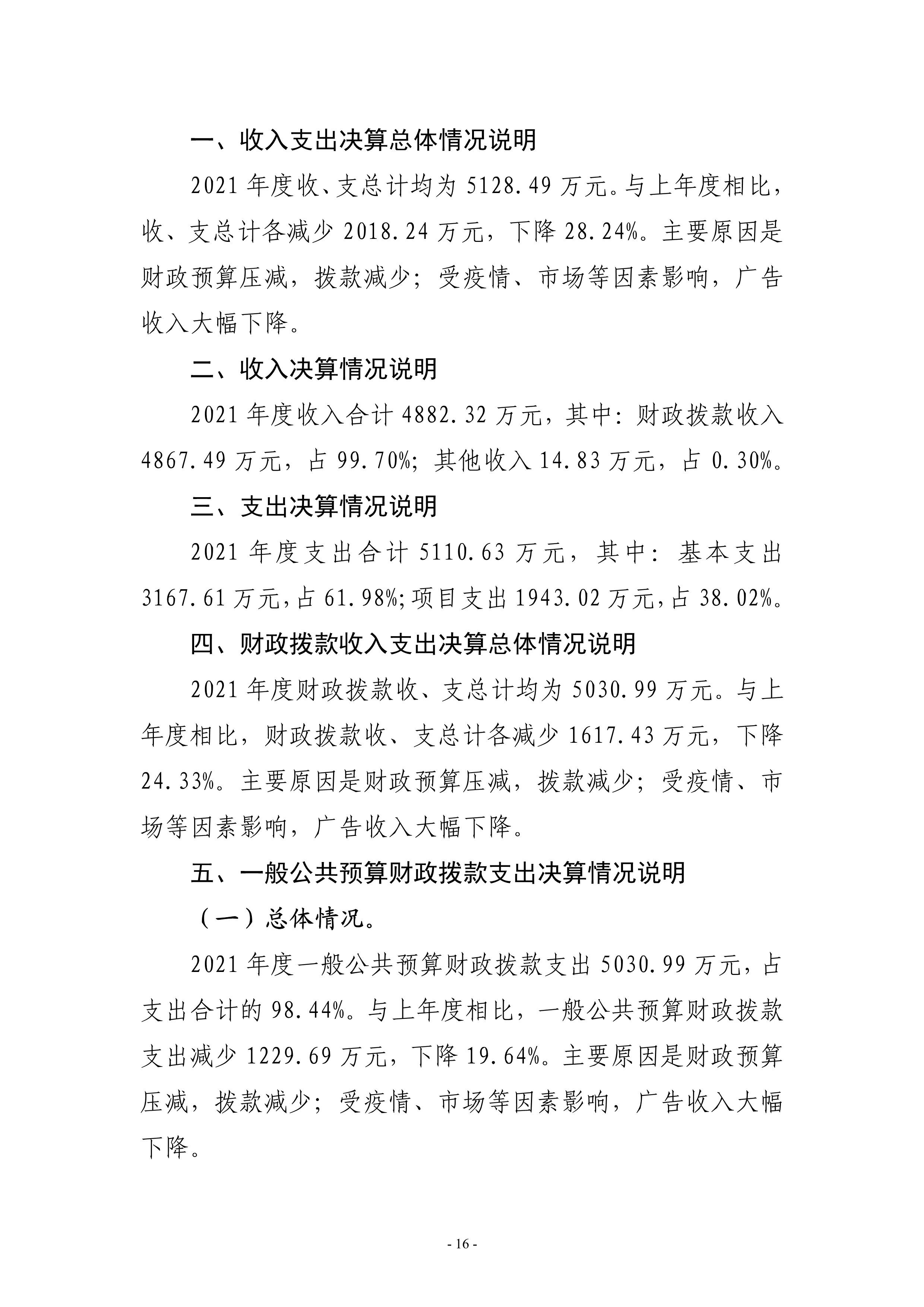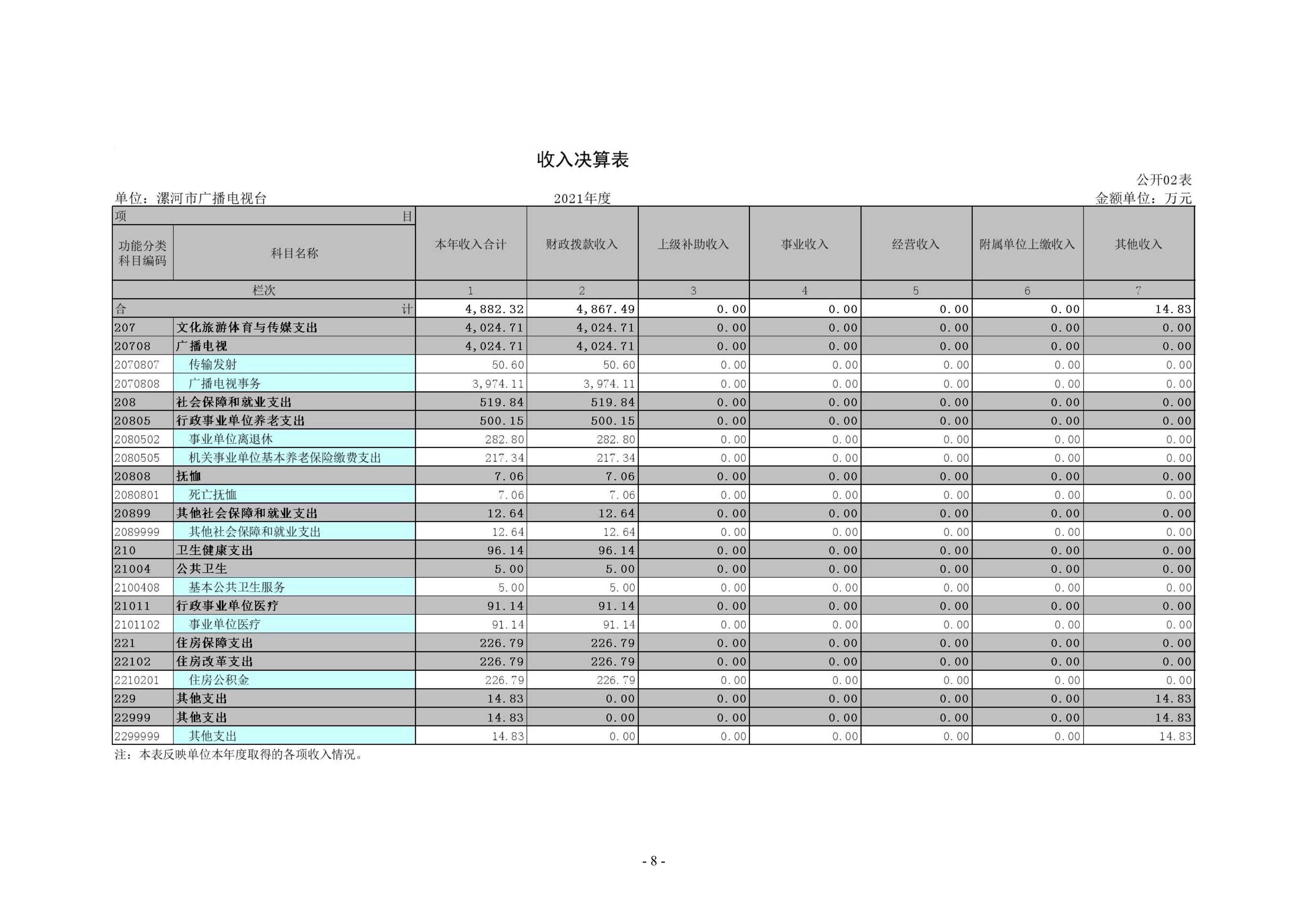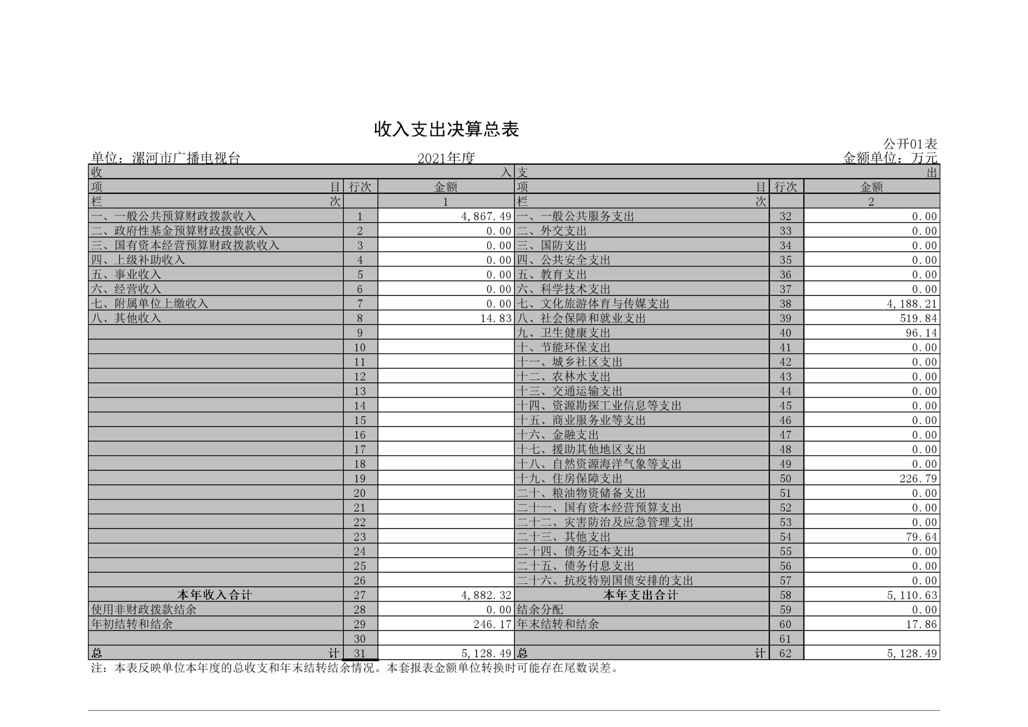 2021年度漯河市廣播電視臺(tái)單位決算