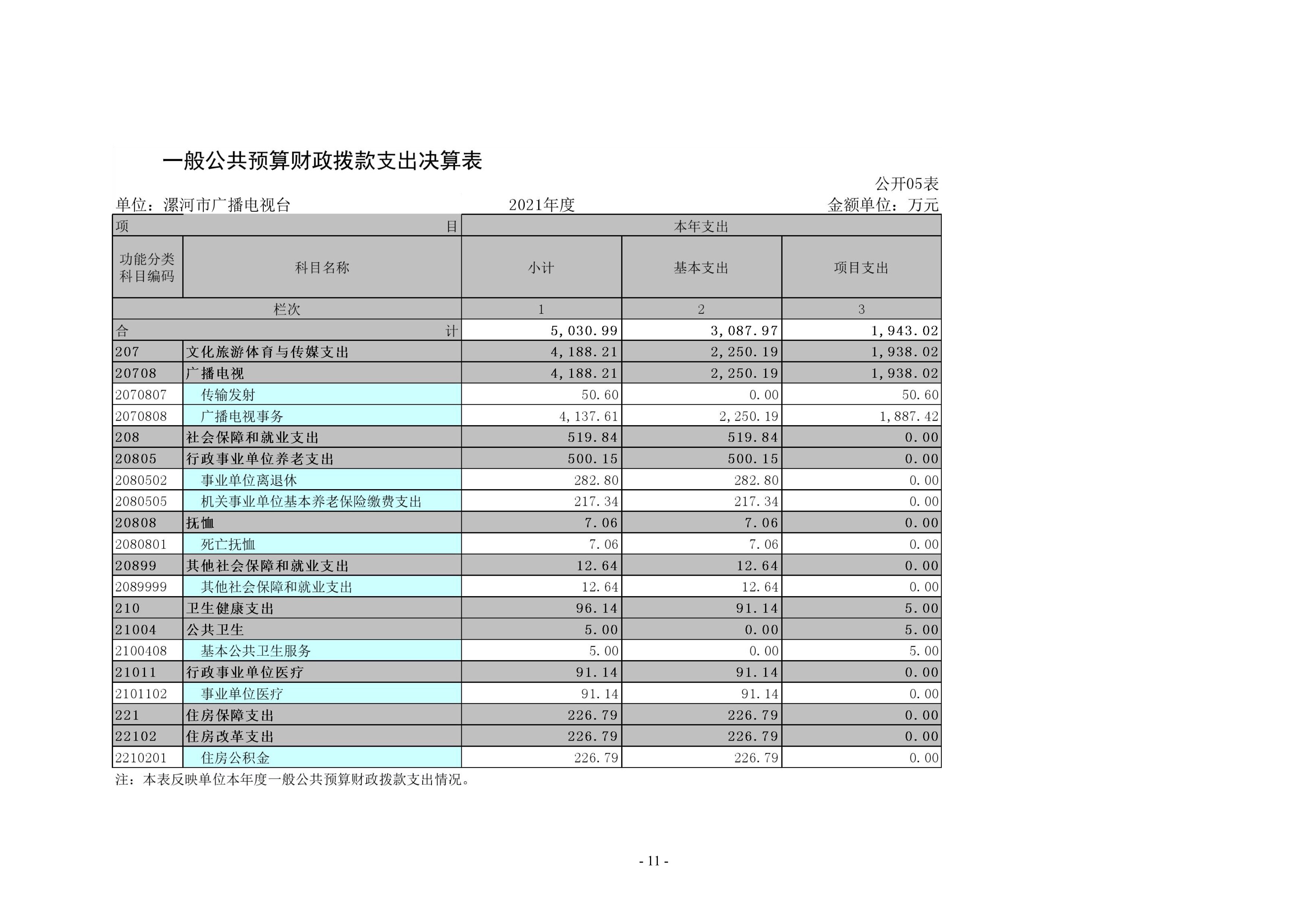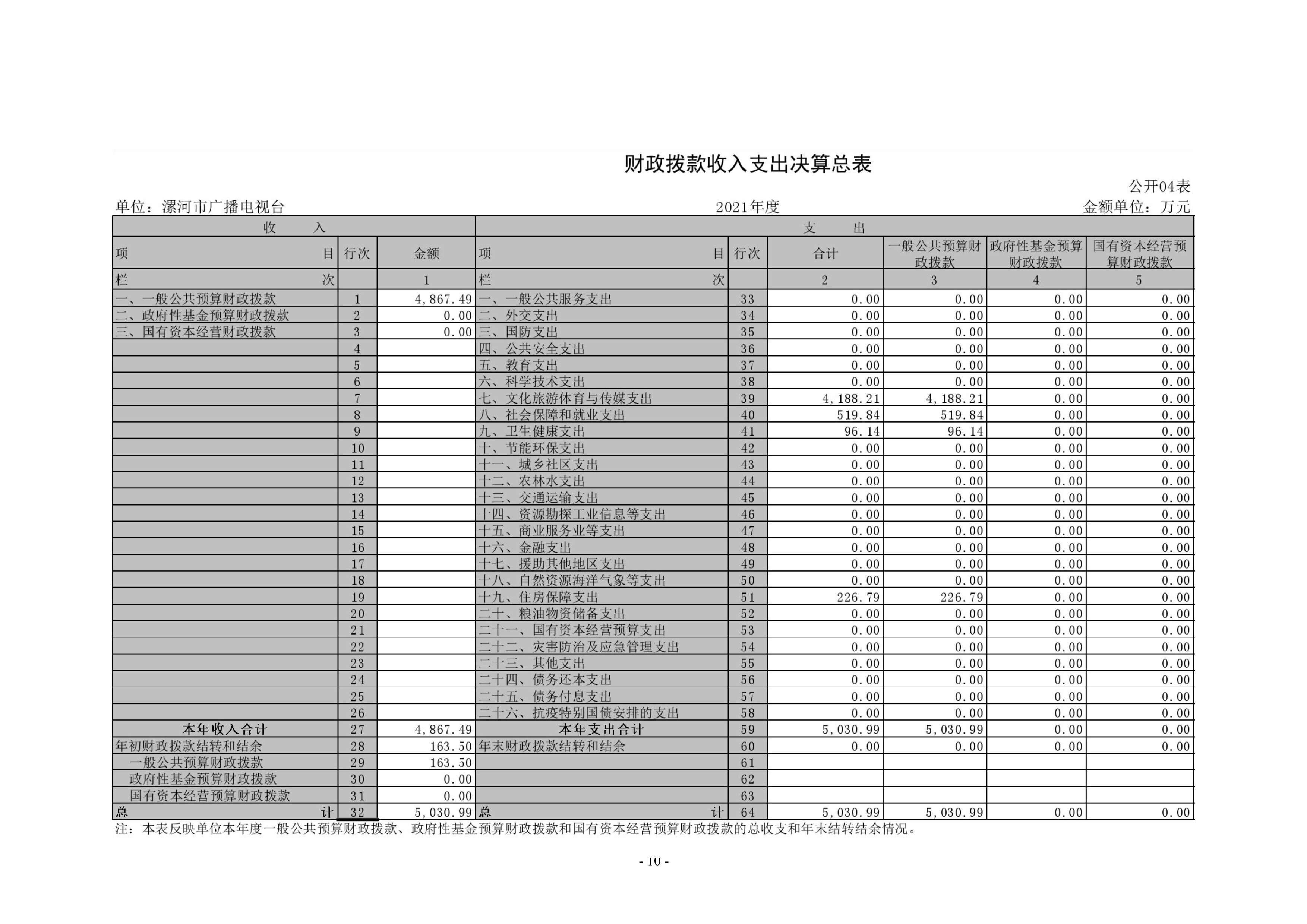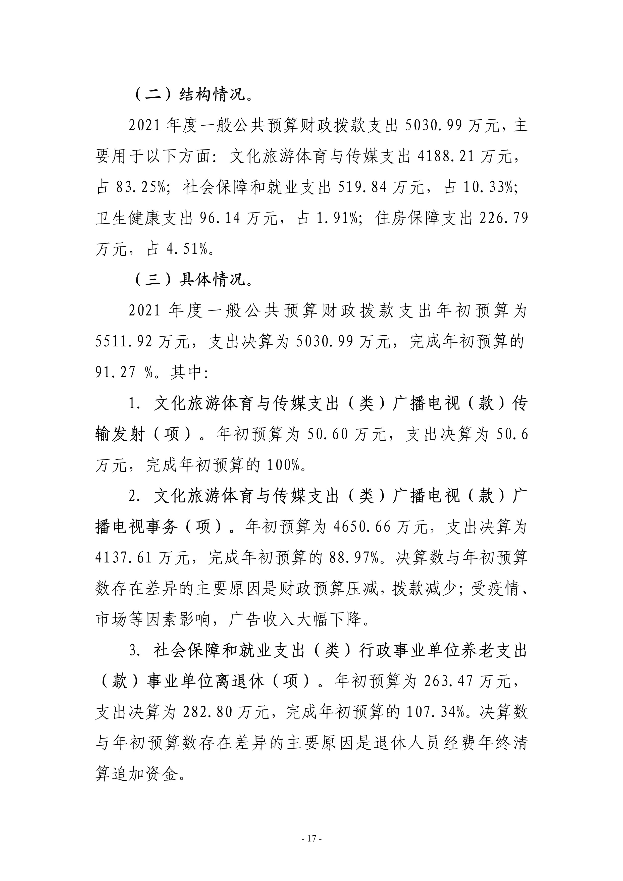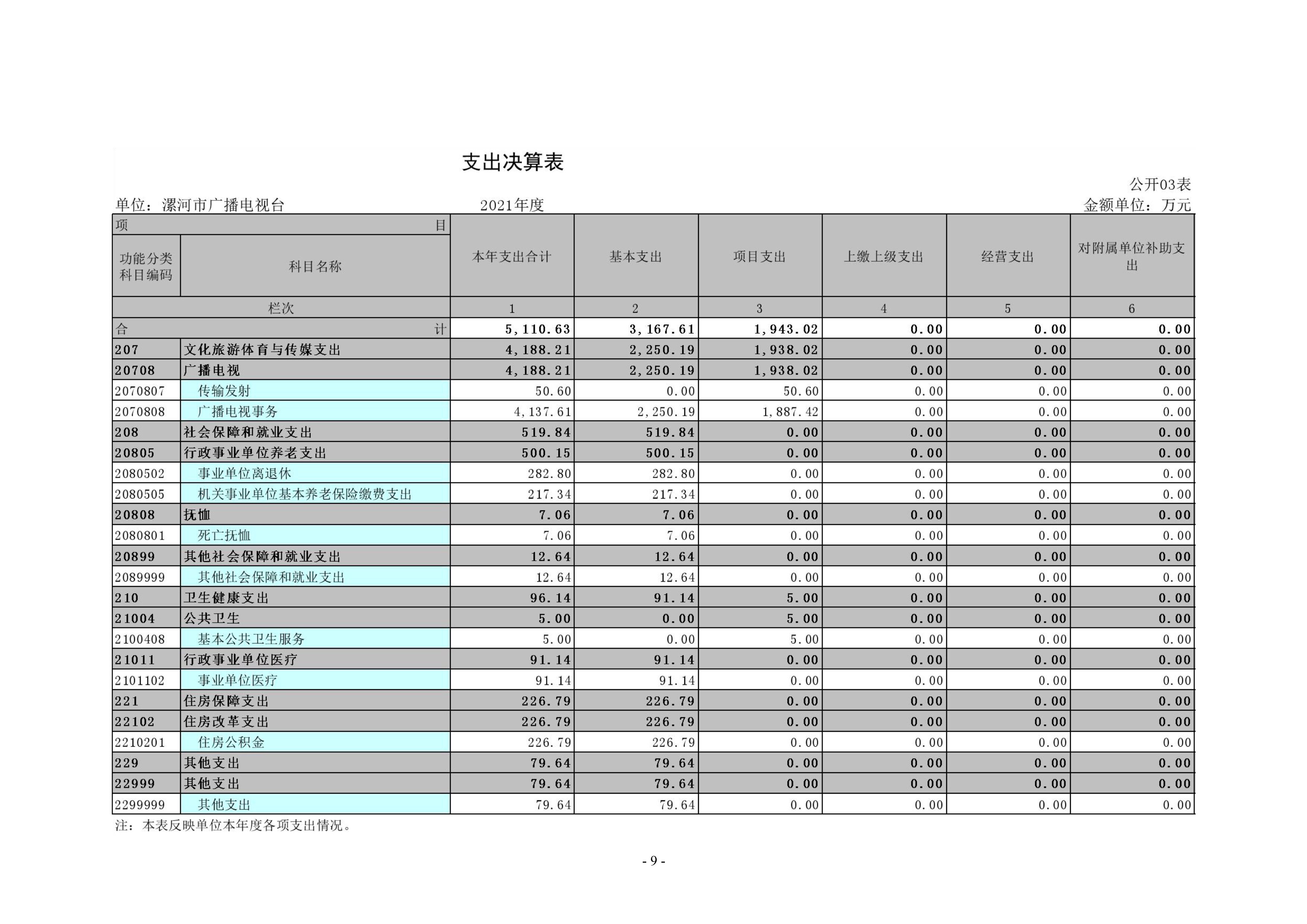 2021年度漯河市廣播電視臺(tái)單位決算