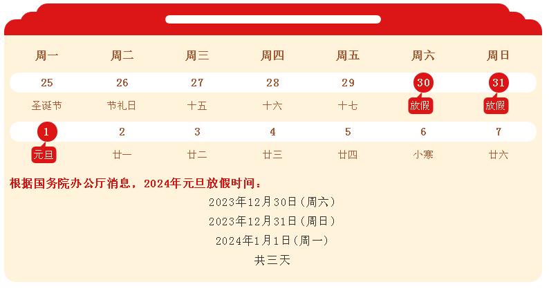 根據(jù)國(guó)務(wù)院辦公廳消息,2024年元旦放假時(shí)間: