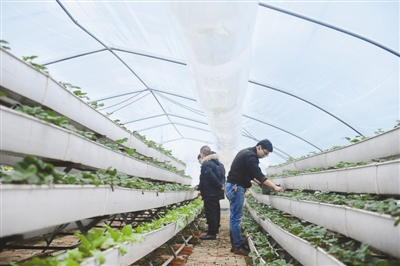 秸稈反應(yīng)堆技術(shù)是源匯區(qū)食品安全監(jiān)督大隊(duì)在精準(zhǔn)扶貧過(guò)程中幫助群眾引入的。王新華帶記者進(jìn)入基地的塑料大棚,一入棚,排排立體種植的草莓就呈現(xiàn)眼前。舒展的草莓葉子充滿盈盈綠意,其間怒放著朵朵小白花。與一般的塑料大棚不同的是,草莓上面的棚架上固定有兩條塑料薄膜制成的“長(zhǎng)龍”,里面充滿氣體。“長(zhǎng)龍”貫穿大棚兩端,“龍身”上扎有一個(gè)一個(gè)的孔。王新華對(duì)記者說(shuō):“這兩條‘長(zhǎng)龍’是送氣筒,里面是落葉經(jīng)秸稈反應(yīng)堆技術(shù)處理后產(chǎn)生的二氧化碳?xì)怏w。”二氧化碳的氣源,是大棚一端的秸稈反應(yīng)堆。正在忙著為秸稈反應(yīng)堆打孔的陳小甫是大劉鎮(zhèn)前陳村村民,經(jīng)過(guò)一段時(shí)間的操作,他儼然成了秸稈反應(yīng)堆技術(shù)方面的行家里手。“這一種是‘內(nèi)置秸稈生物反應(yīng)堆’,其實(shí)就是把我們以前焚燒掉的玉米秸稈、樹葉等通過(guò)發(fā)酵,使它們轉(zhuǎn)化成蔬菜、瓜果所需要的二氧化碳。發(fā)酵過(guò)程中,還能為冬季蔬菜生長(zhǎng)提供大量的熱量,促進(jìn)蔬菜生長(zhǎng)。使用秸稈生物反應(yīng)堆技術(shù)后,可以不施化肥、不打農(nóng)藥,生產(chǎn)出來(lái)的瓜果蔬菜是典型的有機(jī)綠色食品。”