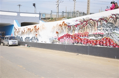 (記者 齊 放 實 習(xí) 生 李博昊)崇山峻嶺,漫山紅遍,大好河山盡收眼底;藍(lán)天白云,賞心悅目……昔日單調(diào)的涵洞有了“色彩”。3月25日下午,記者在郾城區(qū)龍城鎮(zhèn)十五里店村通往仲李村的孟平鐵路涵洞處,看到多名施工人員正在美化涵洞。