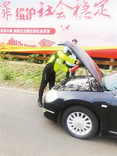 “看到他的車(chē)著了火,我就帶著摩托車(chē)上的滅火器和同事陳凱一起趕了過(guò)去。將火撲滅后,又把電瓶線拆掉,防止危險(xiǎn)發(fā)生。”市交警支隊(duì)秩序管理大隊(duì)騎警中隊(duì)騎警陳彬說(shuō),事發(fā)時(shí),他和同事陳凱正在附近執(zhí)行任務(wù)。