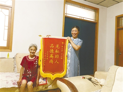 (見習(xí)記者 黨夢琦)不沾親不帶故,市民于江偉卻經(jīng)常自掏腰包幫助貧困的胡娥老兩口。8月5日上午,召陵區(qū)召陵鎮(zhèn)歸村的胡娥老奶奶,在鄰居劉玉香的陪同下,將一面寫著“無私助人 品德高尚”的錦旗送到召陵區(qū)翟莊街道柳莊村于江偉家中。