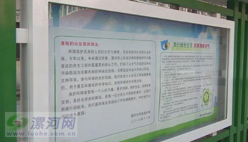 據(jù)了解,今年8月份以來(lái),市環(huán)保局就策劃開(kāi)展了“環(huán)保進(jìn)萬(wàn)家”社區(qū)宣傳活動(dòng)。市環(huán)保局在郾城區(qū)、源匯區(qū)、召陵區(qū)、經(jīng)濟(jì)技術(shù)開(kāi)發(fā)區(qū)、城鄉(xiāng)一體化示范區(qū)和西城區(qū)各選擇2個(gè)居民小區(qū),組織開(kāi)展社區(qū)環(huán)保宣傳。在選定的小區(qū)內(nèi)設(shè)置固定環(huán)保宣傳欄,定期更換內(nèi)容,開(kāi)展環(huán)保科普知識(shí)宣傳、生態(tài)文明宣傳。在小區(qū)內(nèi)擺放宣傳版面,向居民宣傳展示全市污染防治工作進(jìn)展、環(huán)保法律法規(guī)、綠色環(huán)保理念及日常環(huán)保小知識(shí)。