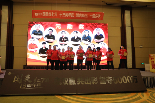 從2006年11月豫南國(guó)美第一家門店——國(guó)美新天地店在漯河正式開業(yè),發(fā)展到今日,豫南國(guó)美已經(jīng)走過了13個(gè)年頭,壯大到39家門店,團(tuán)隊(duì)也從幾十人發(fā)展到900多人。13年的歷程,不少人親眼見證了豫南國(guó)美一步一個(gè)腳印的成長(zhǎng),在慶典活動(dòng)中,對(duì)為豫南國(guó)美做出貢獻(xiàn)的資深老員工、在工作崗位長(zhǎng)期默默奉獻(xiàn)的員工和一些長(zhǎng)期與豫南國(guó)美合作的廠家業(yè)務(wù)精英進(jìn)行了表彰。