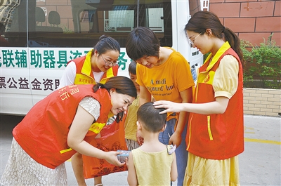 7月26日~8月9日,市殘聯(lián)黨員干部深入殘疾兒童家庭,開展民生實(shí)事大走訪活動(dòng),并為殘疾兒童送去生活用品。記者 王艷彬 攝