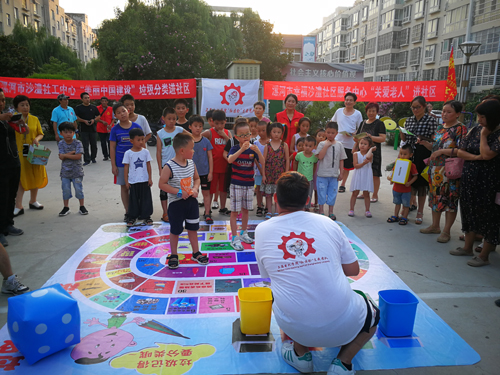 8月16日下午,我市志愿者在市區(qū)長(zhǎng)江路沙澧錦繡花園小區(qū),為居民們講解垃圾分類知識(shí),并進(jìn)行垃圾分類小游戲。記者  朱紅  攝