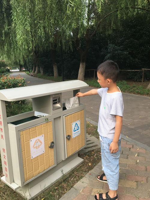 8月7日下午,在沙澧河風(fēng)景區(qū),一名小游客主動(dòng)把垃圾投進(jìn)垃圾桶!