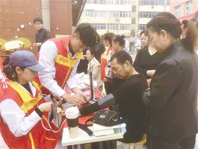 10月12日,源匯區(qū)老街街道開(kāi)展“紅周六 志愿行”活動(dòng),志愿者到各小區(qū)義診、清理雜物、宣傳安全知識(shí)。記者 于文博 攝