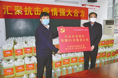 短短3天時間,口腔醫(yī)學系師生捐款3萬余元。系黨總支從黨建經(jīng)費中籌措捐贈3000元。他們買了5噸84消毒液。針對農(nóng)村疫情防控物資缺乏的情況,他們將5噸消毒液捐給貧困村。