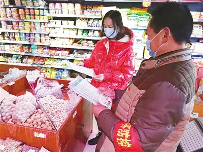 (記者 潘麗亞)2月1日上午,在市區(qū)太行山路,郾城區(qū)龍塔街道和平路社區(qū)黨員志愿者韓啟州正在給沿街商戶發(fā)放疫情防控知識宣傳單。