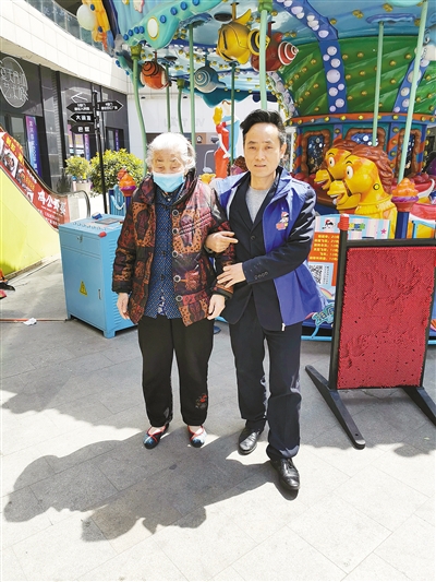 趙廣月工作的時(shí)候,他的媽媽就在廣場(chǎng)內(nèi)散步、曬太陽(yáng)??匆?jiàn)稀奇的東西,她也喜歡像孩子一樣問(wèn)東問(wèn)西。趙廣月只要閑下來(lái),就趕緊尋找母親的身影。
