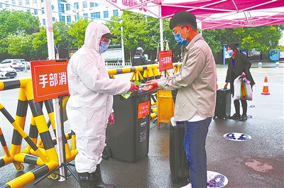 “媽媽再見(jiàn),放心吧,我會(huì)照顧好自己的!”來(lái)自許昌的程佳寶同學(xué)到了學(xué)校門(mén)口后,和爸媽擁抱惜別,然后進(jìn)入測(cè)溫消毒防疫通道,進(jìn)行身份核驗(yàn)、體溫測(cè)量、行李消毒、更換口罩、手部消毒后,進(jìn)入闊別已久的校園。