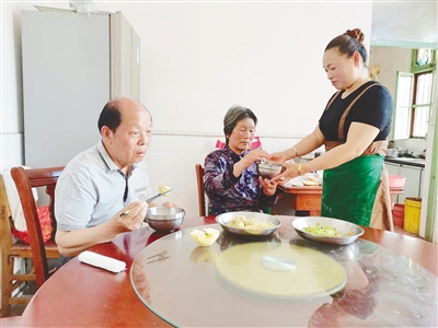 “今兒中午吃啥飯?”采訪臨近中午,趙冬麗問公公婆婆。“雞蛋番茄撈面條吧!”公公楊國順說。“好!我先把面和上。”趙冬麗笑瞇瞇地起身去了廚房。