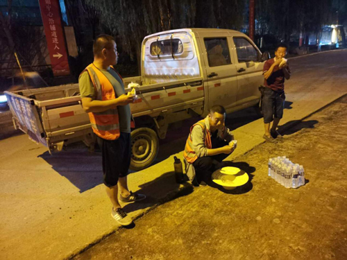 在9月8日早晨7:30左右,在這個時間段,很多上班人員才剛開始前往工作的路上,而他們已經(jīng)工作了近一個多小時,和往常一樣皇十線項目部人員從施工現(xiàn)場回來準(zhǔn)備洗手吃早飯,準(zhǔn)備開飯的時候,張曉東對同事說:“我這會兒吃不下,我等會兒再吃”,說著就要起身邁步走,剛走兩步“撲通”一聲,是張曉東倒地的聲音,其他同事聽到聲響趕忙跑過去詢問情況,并小心翼翼的把張曉東攙扶起來,“我這會兒不知道怎么了,忽然就感覺雙腿沒有了力氣 ”張曉東說著就要邁腿向前走一步,工作三十余載的鄭民軍經(jīng)理聽到這話后立馬明白了是怎么一回事兒,急忙安排其他人開車送張曉東去醫(yī)院,鄭經(jīng)理對其他同事說:“曉東這種現(xiàn)象在我們施工人員中曾出現(xiàn)過,在2013年S241施工時安衛(wèi)東也是因為天氣炎熱出汗太多,加上體力透支,導(dǎo)致身體出現(xiàn)虛脫、麻木等現(xiàn)象”,雖然大家對張曉東的情況比較擔(dān)心,但是,大家并沒有因此去浪費時間,而是調(diào)整好心態(tài)著急忙慌的往嘴里扒拉早飯,想著在保證質(zhì)量的同時緊趕施工進度,盡快投入到“熱火朝天”的工作中去。每分每秒對他們來說都非常珍貴,因為他們的信仰就是以“鋪路石”精神建設(shè)人民滿意公路!