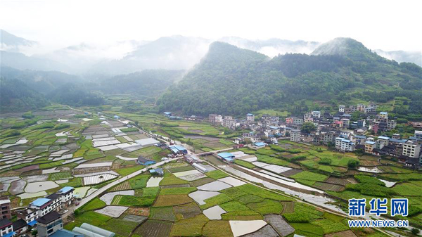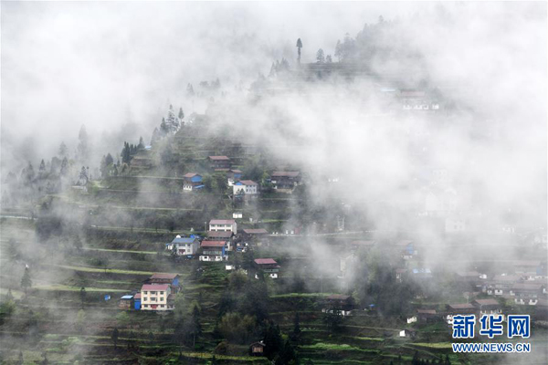 當(dāng)日,在貴州省黔東南苗族侗族自治州,一場(chǎng)春雨過后,村莊、山川、田野在薄霧中若隱若現(xiàn),美若畫卷。