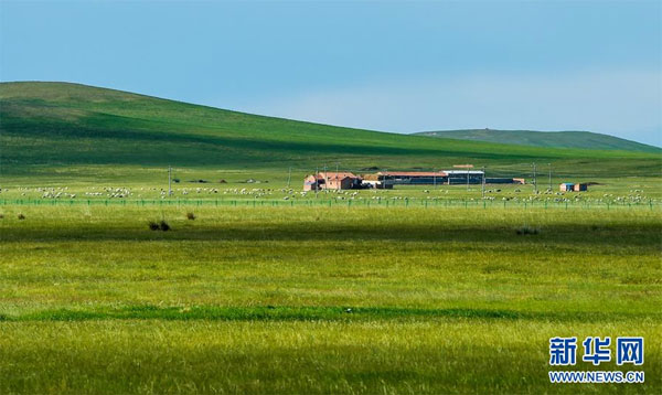 這是錫林郭勒盟烏拉蓋草原風光(6月17日攝)。 初夏時節(jié),內(nèi)蒙古中部的錫林郭勒大草原風景如畫。 新華社記者 連振 攝