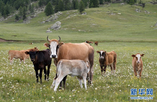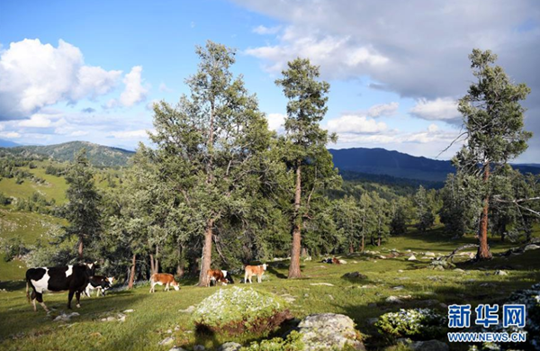 這是6月21日拍攝的新疆阿勒泰地區(qū)哈巴河縣的牧場風光。 夏日時節(jié),新疆哈巴河縣薩爾布拉克鎮(zhèn)高山牧場水草豐茂,風景如畫。 新華社記者 沙達提 攝