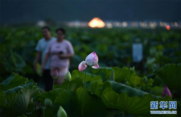 6月28日,游客在廣西柳州市柳江區(qū)百朋鎮(zhèn)萬(wàn)畝荷塘里游玩。 連日來(lái),廣西柳州市柳江區(qū)百朋鎮(zhèn)萬(wàn)畝荷塘種植的春季蓮藕喜獲豐收,各色荷花競(jìng)相綻放,吸引游客前來(lái)賞玩。百朋鎮(zhèn)是柳州市柳江區(qū)雙季蓮藕的主產(chǎn)區(qū),雙季蓮藕種植面積達(dá)3.2萬(wàn)畝。同時(shí),當(dāng)?shù)胤e極發(fā)展荷花景區(qū)生態(tài)旅游休閑項(xiàng)目,260多戶貧困戶通過(guò)蓮藕種植及旅游產(chǎn)業(yè)實(shí)現(xiàn)脫貧。 新華社發(fā)(黎寒池 攝)