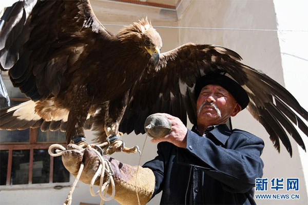 6月29日,庫爾馬西·胡特曼撫摸他的獵鷹。 馴鷹習(xí)俗是柯爾克孜族長期以來形成的一種生產(chǎn)生活習(xí)俗,新疆克孜勒蘇柯爾克孜自治州阿合奇縣牙朗奇村的庫爾馬西·胡特曼今年69歲,是國家級非物質(zhì)文化遺產(chǎn)代表性項(xiàng)目柯爾克孜族馴鷹習(xí)俗的代表性傳承人。 庫爾馬西的家族世代馴鷹。從小與鷹相處,庫爾馬西成為名副其實(shí)的“鷹語者”。要將兇猛的野鷹訓(xùn)練成聽從指揮的獵鷹絕非易事,需要馴鷹人投入大量心血,精心喂養(yǎng)。一代代馴鷹人之間口耳相傳,形成了一套涵蓋取鷹、熬鷹、馴鷹、放鷹等方面的絕學(xué)。“鷹是有靈性的動(dòng)物,懂得感恩,會通過抖動(dòng)羽毛來表示喜悅,表示對你的愛。”庫爾馬西說,“鷹也會因?yàn)槲业目洫?jiǎng)給我信號,通過叫聲、身體語言告訴我,它理解了我的話。” 在柯爾克孜族的馴鷹傳統(tǒng)里,獵鷹在為主人“服役”一到五年后,將重返天空,獲得自由。隨著野生動(dòng)物保護(hù)相關(guān)法規(guī)的出臺,當(dāng)?shù)匾呀柜Z鷹人取鷹捕鷹,目前已馴養(yǎng)的獵鷹放飛后恐將無以為繼?;蛟S,庫爾馬西這一代人,將成為最后的“鷹語者”。 新華社記者 宋彥樺 攝