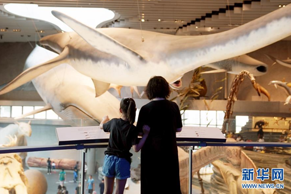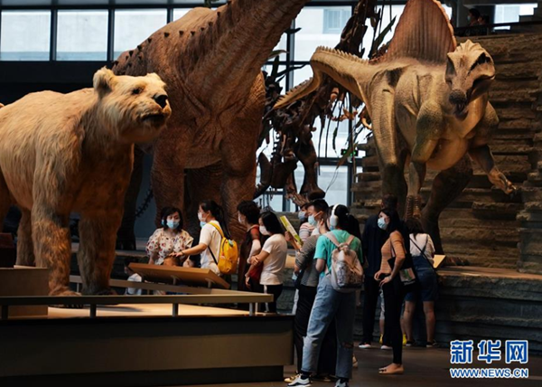 7月15日,觀眾在上海自然博物館參觀。 進(jìn)入暑假,不少家長(zhǎng)帶著孩子到上海自然博物館參觀。該展館采取實(shí)名制分時(shí)段購(gòu)票參觀、參觀人數(shù)分時(shí)限流、發(fā)布次日參觀人數(shù)預(yù)測(cè)等舉措,加強(qiáng)防疫常態(tài)化管理。 新華社記者 劉穎 攝