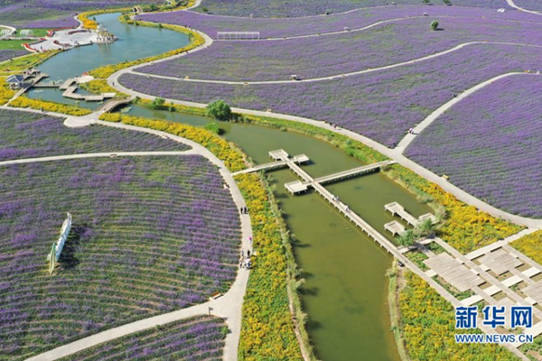 這是7月12日拍攝的甘肅省金昌市紫金苑景區(qū)(無(wú)人機(jī)照片)。 甘肅省金昌市是我國(guó)最大的鎳鈷生產(chǎn)基地,有“鎳都”之稱。近年來(lái),金昌市大力推進(jìn)花園城市建設(shè),利用當(dāng)?shù)貢円箿夭畲蟆⒐庹粘渥愕茸匀粭l件,引種花卉,讓這座地處戈壁的工業(yè)城成為掩映在花海中的田園花城。 新華社發(fā)(杜哲宇 攝)