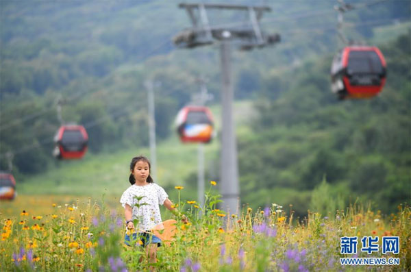 7月19日,游客在吉林市萬科松花湖度假區(qū)的高山花海游玩。 夏日時節(jié),吉林省吉林市的萬科松花湖度假區(qū)利用滑雪場的地形優(yōu)勢,增添了高山花海、彩虹滑道等休閑旅游項目,吸引游客前來觀光游覽。 新華社發(fā)(顏麟蘊攝)