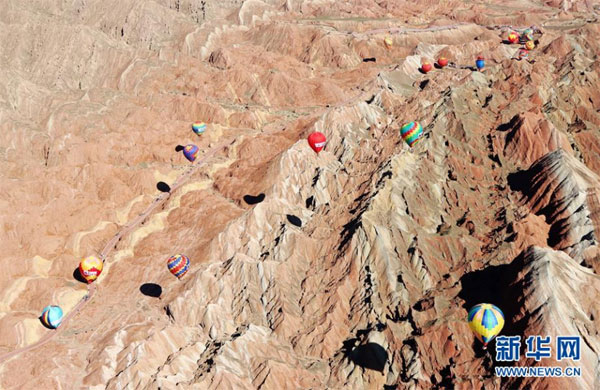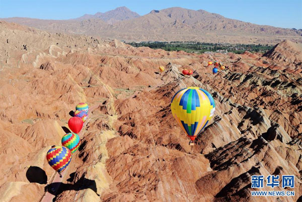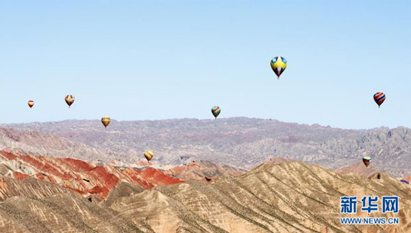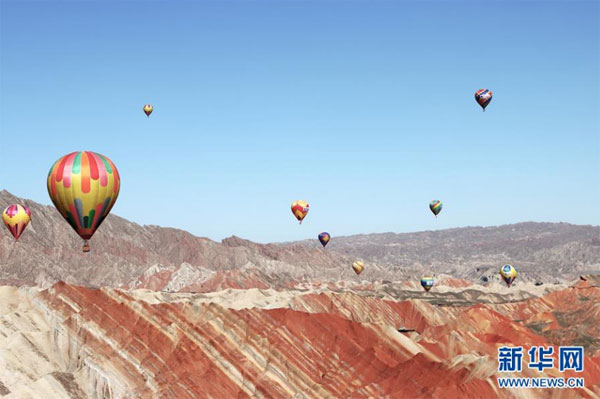 7月26日,熱氣球在張掖七彩丹霞景區(qū)升起。 當日,第二屆中國·張掖七彩丹霞(國際)熱氣球節(jié)拉開帷幕,活動為期12天,100具熱氣球將進行4個場次的集中飛行表演和20個場次的常態(tài)化飛行表演。 新華社發(fā)(成林 攝)