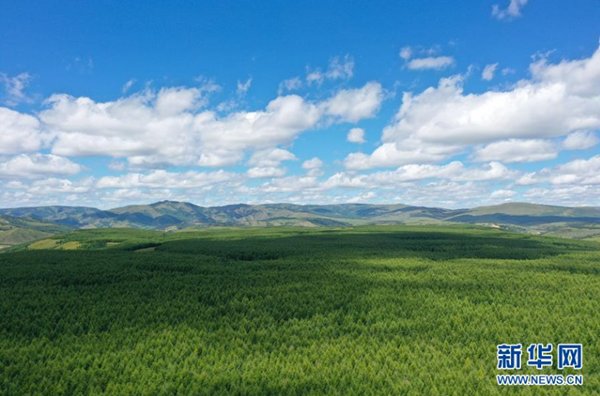 這是8月13日拍攝的位于克什克騰旗的樺木溝國家森林公園風(fēng)景(無人機照片)。 克什克騰旗位于內(nèi)蒙古自治區(qū)赤峰市西北部,境內(nèi)的湖泊、河流、草原、森林等自然景觀,讓人們流連忘返。 新華社記者 徐欽 攝