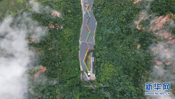 8月15日拍攝的紫金山景區(qū)內(nèi)的旅游設(shè)施(無人機(jī)照片)。 當(dāng)日,位于河北省邢臺(tái)市西部太行山脈的紫金山景區(qū)云霧彌漫,美景如畫。 新華社記者 牟宇 攝