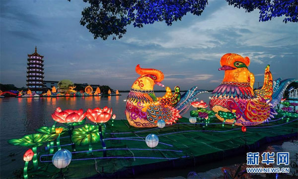 9月28日拍攝的“情意綿綿”燈組(前右)與“月滿周莊”燈組(后左)。 當(dāng)日,2020海峽兩岸(昆山)中秋燈會(huì)在江蘇昆山開(kāi)幕,為期一個(gè)月。燈會(huì)設(shè)置的水鄉(xiāng)周莊燈區(qū)以水鄉(xiāng)、古鎮(zhèn)、田園江南為依托,將傳統(tǒng)彩燈與現(xiàn)代光影藝術(shù)相融合,打造“水韻芳華”夜周莊。 新華社記者 楊磊 攝