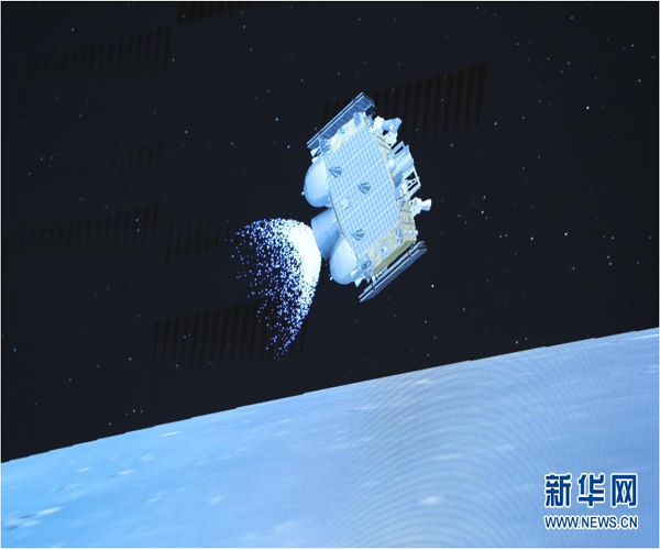 這是12月3日,在北京航天飛行控制中心拍攝的嫦娥五號(hào)上升器飛行過(guò)程。新華社記者 金立旺 攝